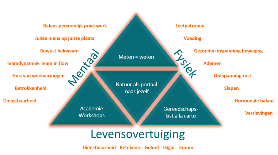 Meten = Weten is een verzameling meetmethoden waaruit je, afhankelijk van het vraagstuk, een keuze kunt maken. Alle instrumenten geven een een helder en meetbaar beeld van de fysieke, mentale en emotionele gezondheidstoestand op persoons-, team- of organisatie niveau. Doordat alle meetmethoden wetenschappelijk onderbouwd zijn, krijg je een accuraat inzicht in je huidige vitaliteit.